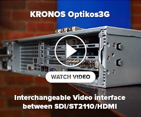 The video interfaces supported by IngeSTore are SDI, NDI, HDMI and ST2110/2022. When IngeSTore is licensed to a KRONOS Optikos3G model, the video interfaces can be “hot swapped” between SDI over coaxial, SDI over fiber, HDMI 1.4 and SMPTE 2110/2022 using an approved SFP+ hardware module.
